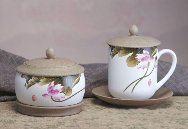 和衷共濟.玉映砂會議杯茶葉罐兩件套>