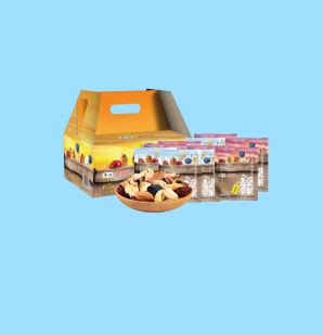 內(nèi)含:美國(guó)巴旦木仁,美國(guó)蔓越梅干(整粒),非洲腰果仁,智利藍(lán)莓干,土耳其原產(chǎn)榛子仁,核桃仁(純水精密去衣)