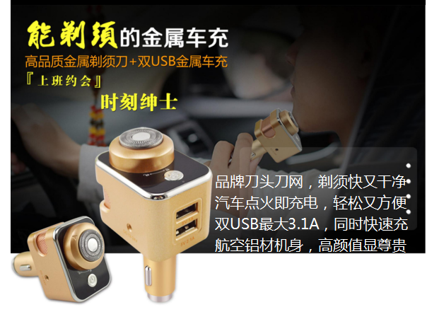 高品質金屬剃須刀+雙USB金屬車充>
