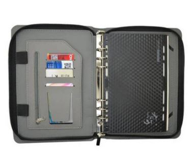 平整極致超薄,便攜性十足,真皮皮包,內置活頁筆記本,多個夾層可放銀行卡