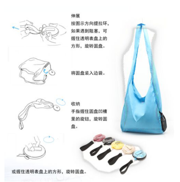 3:卷軸抽拉,隨時(shí)待用,購物袋可以收縮到外殼中。體積小,方便攜帶
