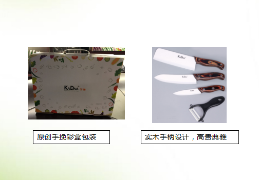【材質(zhì)】高級(jí)氧化鋯 【大小】6寸菜刀,6寸廚師刀,4寸水果刀, 陶瓷瓜刨,亞克力刀架 【適用范圍】各種蔬果及無骨肉類 【產(chǎn)品規(guī)格】彩盒,34*26*10cm 【裝箱率】53*35*52cm/10套