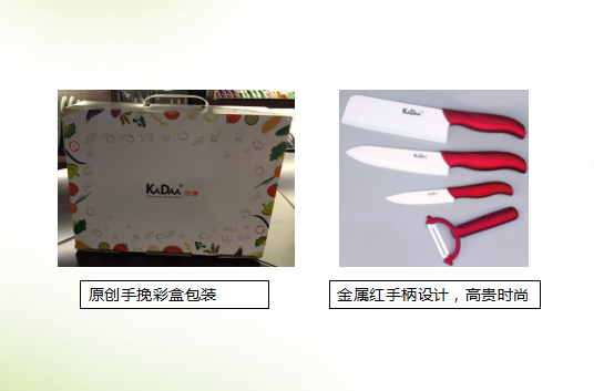 【材質】高級氧化鋯 【大小】6寸菜刀,6寸廚師刀,4寸萬用刀, 陶瓷瓜刨,亞克力刀架 【適用范圍】各種蔬果及無骨肉類 【產品規格】彩盒,34*26*10cm 【裝箱率】53*35*52cm/10套