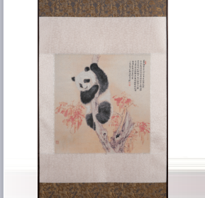 真絲平面織錦熊貓棲息立軸畫
